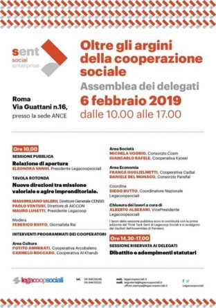 Nel contesto di questi numeri si terrà il 6 febbraio a Roma l’Assemblea dei delegati di Legacoopsociali. Costituisce la seconda tappa del percorso che l’Associazione ha deciso di intraprendere attraverso l’istituzione del Think Tank SEnt (Social Enterprise). Il percorso è finalizzato alla creazione di uno spazio di confronto itinerante e permanente, per connettere i luoghi della trasformazione culturale, sociale ed economica del Paese con la visione e il potenziale innovativo dell’azione presente e futura della impresa sociale cooperativa.