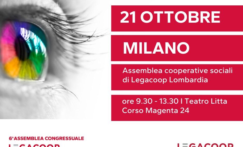 In vista del congresso nazionale di Legacoopsociali che si terrà il 28 e 29 novembre prossimi, è convocata l’assemblea delle cooperative sociali di Legacoop Lombardia lunedì 21 ottobre dalle ore 9.30 alle ore 13.30 al Teatro Litta (Sala Cavallerizza) in Corso Magenta 24 a Milano.